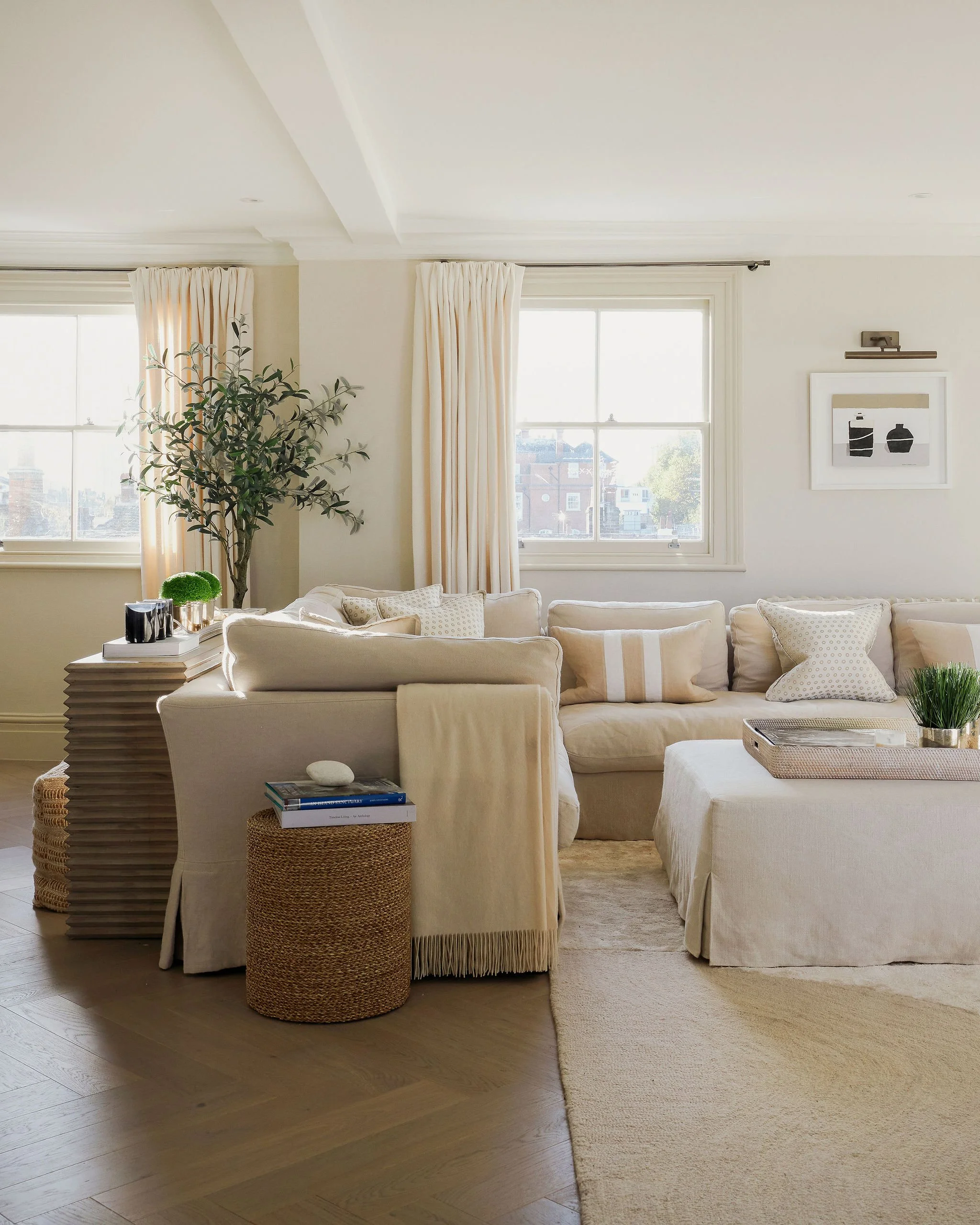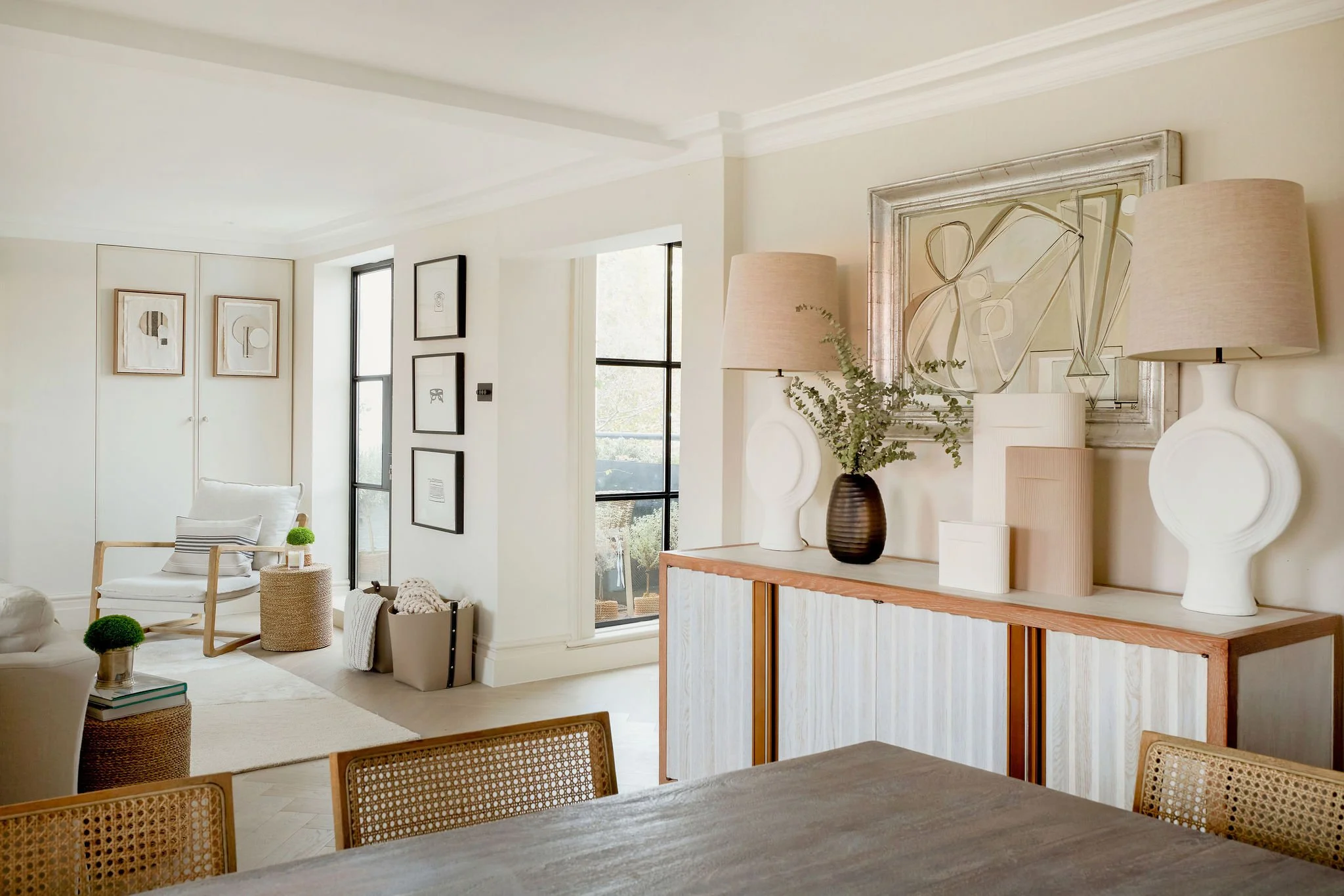 With this property we set out to enhance the natural light from the duplex's dual aspect and panoramic views over London. Instating crittal windows and an open plan layout was key, as was using light and neutral finishes and furnishing to create a calm and elegant oasis in the heart of Chelsea.